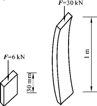 在前面介绍轴向拉压杆的强度计算时,认为压杆只要满足轴向压缩的强度条件就能正常工作。这种结论对于始终保持其原有直线形状的粗短杆来说是正确的,而对于细长杆则不然。例如,一根矩形截面面积为5mm×30mm的压杆,对其施加轴向压力,如图5-24所示。设材料的抗压强度σ=40MPa,当杆很短时,将杆压坏所需的压力为F=σA=6 000N,但杆长为1m时,则杆在F=30 kN时,就会突然产生弯曲变形而失去工作能力。可见,细长压杆丧失工作能力是由于其压杆不能维持原有直杆的平衡状态所致,这种现象称为压杆丧失稳定性,简称失稳。上例表明,材料及截面均相同的压杆,由于长度不同,其抵抗外力的能力将发生根本改变:粗短压杆的破坏取决于强度;细长压杆的破坏是由于失稳。因此,对细长压杆还需研究其稳定性。
