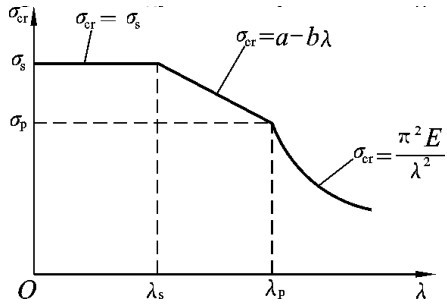 λs≤λ≤λp的压杆称为中柔度杆或中长杆,λ<λs的压杆称为小柔度杆或短粗杆。