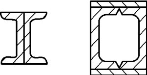 当压杆在各个弯曲平面内的支承条件相同时,即μ值相同时,则压杆的失稳发生在最小刚度平面内。因此,应尽量使截面的Iz=Iy,这样可使压杆在各个弯曲平面内具有相同的稳定性。例如图5-33所示的组合截面就比槽钢腹板相拼截面要好。