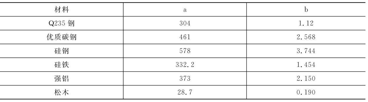 a和b是与材料有关的常数,为了便于查阅,现将一些材料的a、b常数列于表5-3中。