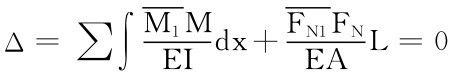 这里Δ1和Δ2分别表示与轴力X1和X2相对应的广义位移,即切口处两个截面的轴向相对位移。因此,这里力法基本方程所表示的变形条件为:切口处的两个截面沿轴向保持接触,即沿轴向的相对位移为零。