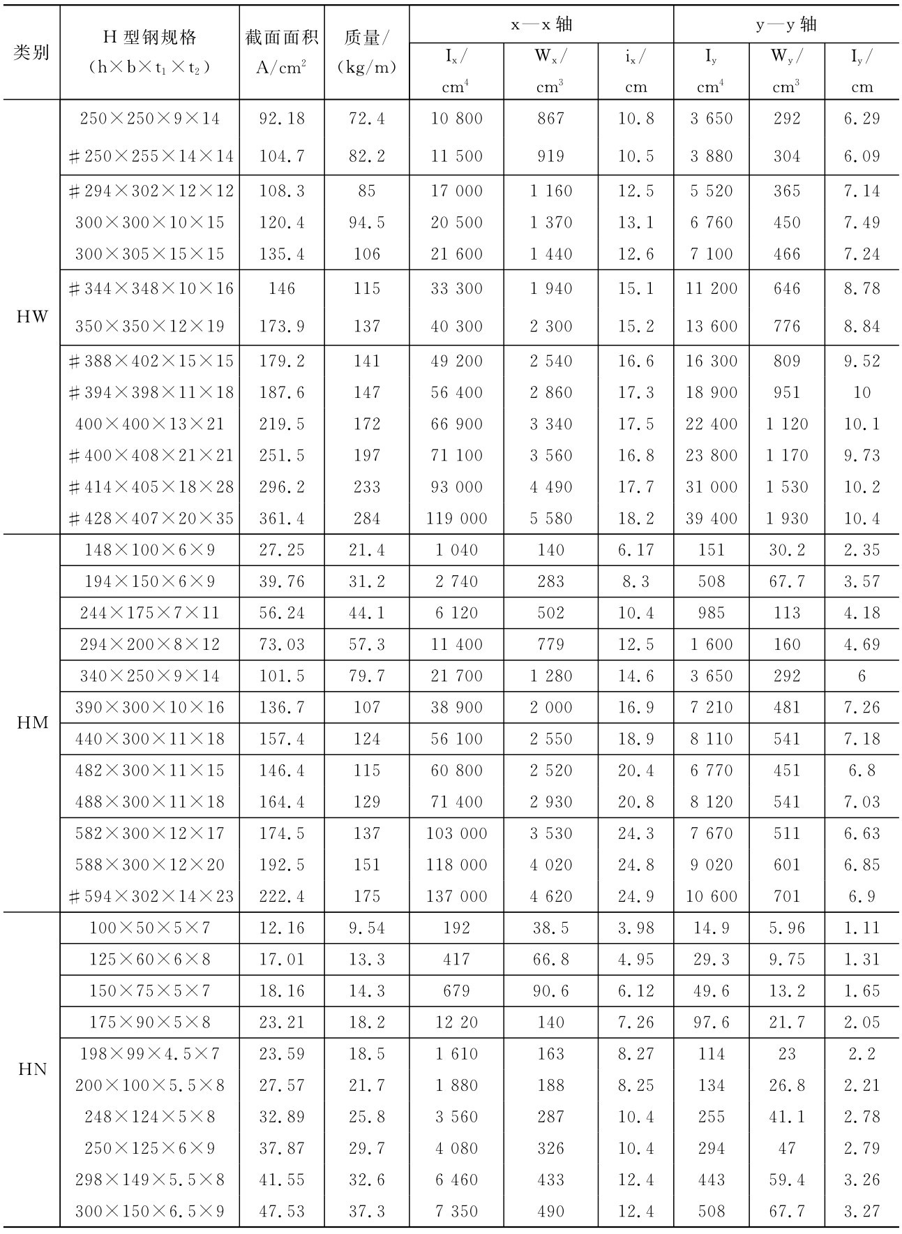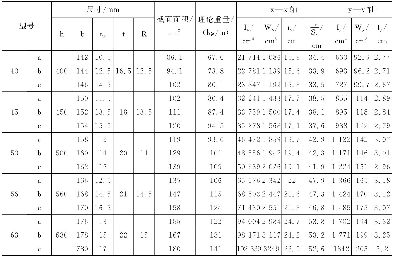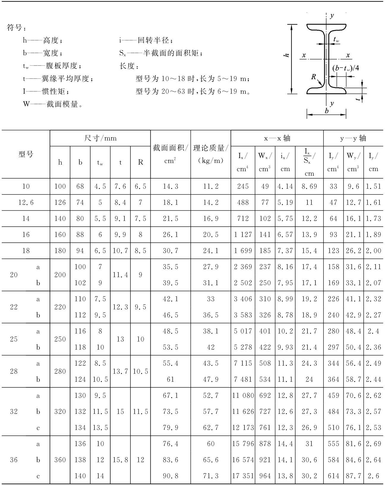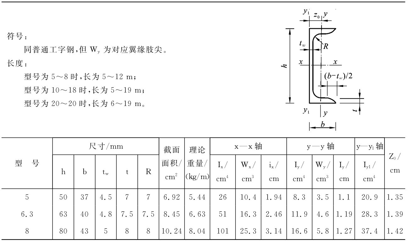 注:一个角钢的惯性矩Ix=Ai 2x,Iy=Ai 2y;一个角钢的截面模量Wxmax=Ix/Zx,Wxmin=Ix/(b-Zx);Wymax=IyZy,Wymin=Iy (b-Zy)。