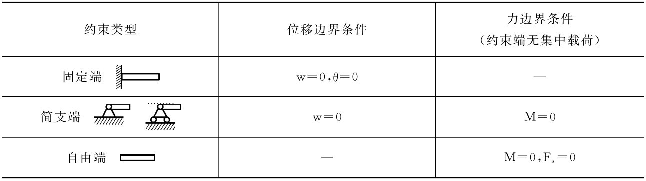 注:力边界条件即剪力图、弯矩图在该约束处的特征。