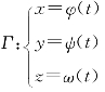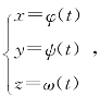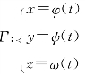 对应的Φ(t)分别为Φ(t)=ω(t),Φ(t)=φ(t),Φ(t)=ψ(t),故此,空间曲线Γ在三坐标面上的投影曲线参数方程分别为