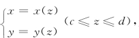 就可用其中一个方程F(y,z)=0表示,如果解出y=y(z)(c≤z≤d),那么曲线Γ的参数方程可认为是