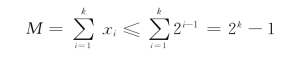 证明 设第i层的结点数为xi(1≤i≤k),深度为k的二叉树的结点数为M,xi最多为2i1,则有