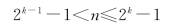 证明 根据完全二叉树的定义和性质2可知,当一棵完全二叉树的深度为k、结点个数为n时,有