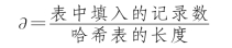 ∂标志哈希表的装满程度。直观地看,∂越小,发生冲突的可能性就越小;反之,∂越大,表中已填入的记录越多,再填记录时,发生冲突的可能性就越大,则查找时,给定需与之进行比较的关键字的个数也就越多。