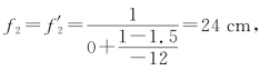 为组合系统的物方和像方主点相对于第一个透镜和第二个透镜的位置,代入数值