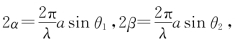 其中第一项为单缝衍射因子,第二项为双缝干涉因子,如图4-10所示。
