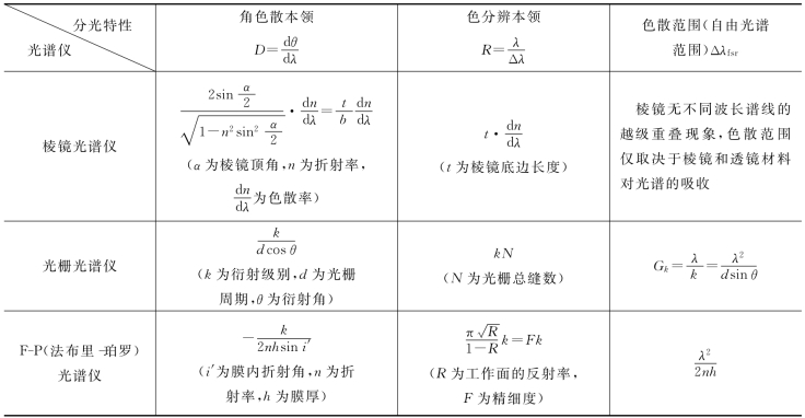 3种重要光谱仪的分光特性比较,如表5-1所示。