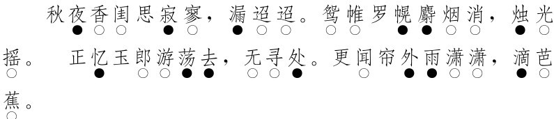 予考乐天晚年与刘梦得唱和此曲调,白云 “古歌旧曲君休听,听取新翻 《杨柳枝》”。盖后来始变新声,而所谓乐天作 《杨柳枝》者,称其别创词也。今黄钟商有 《杨柳枝》曲,仍是七字四句诗,与刘、白及五代诸子所制并同,但每句下各增三字一句,此乃唐时和声,如 《竹枝》《渔父》今皆有和声也。旧词多侧字起头,平字起头者十之一二;今词皆侧字起头,第三句亦复侧字起,声度差稳耳。