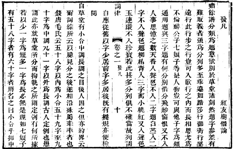 万树在 《词律发凡》和许多词调后的考证里,深入地探讨了词体的声律问题,有非常精辟而独创的见解。兹试评述如下: