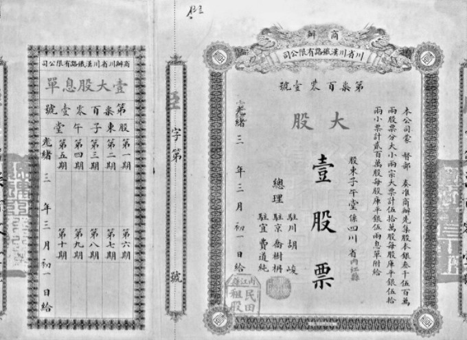 锡良所未强调,而实际上是川汉铁路公司宣传重点之一的是,投资川汉铁路必能赢利。还在尚未开始交纳股金之时,1905年1月制定的《川汉铁路总公司集股章程》《总章》中即写明了,铁路公司要付股息和红利。