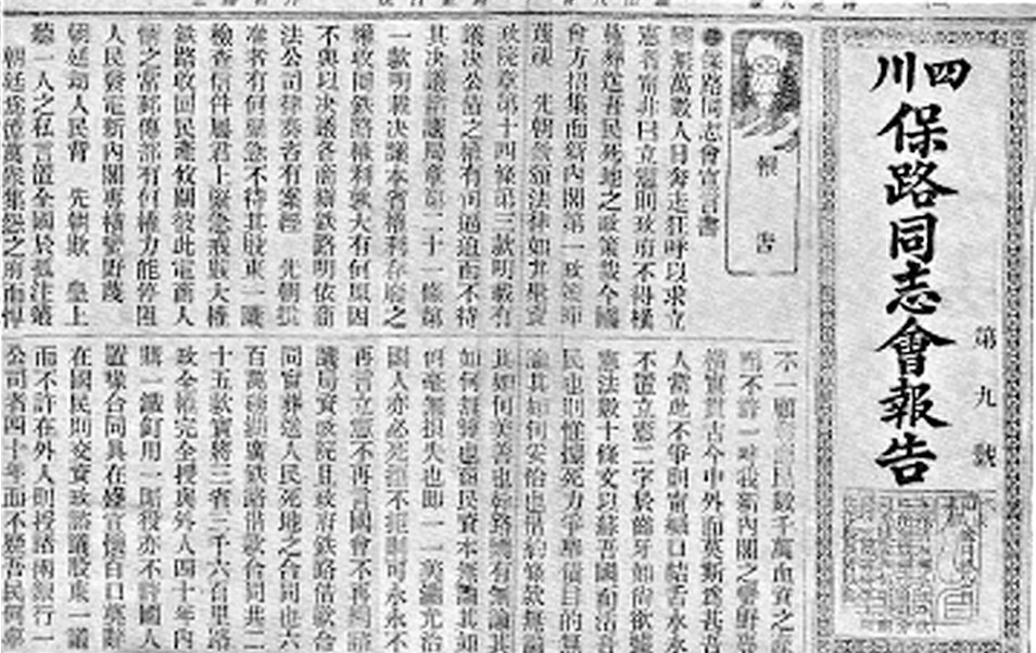 《四川保路同志会报告》 第9号正式提出了该会的 “破约保路” 宗旨