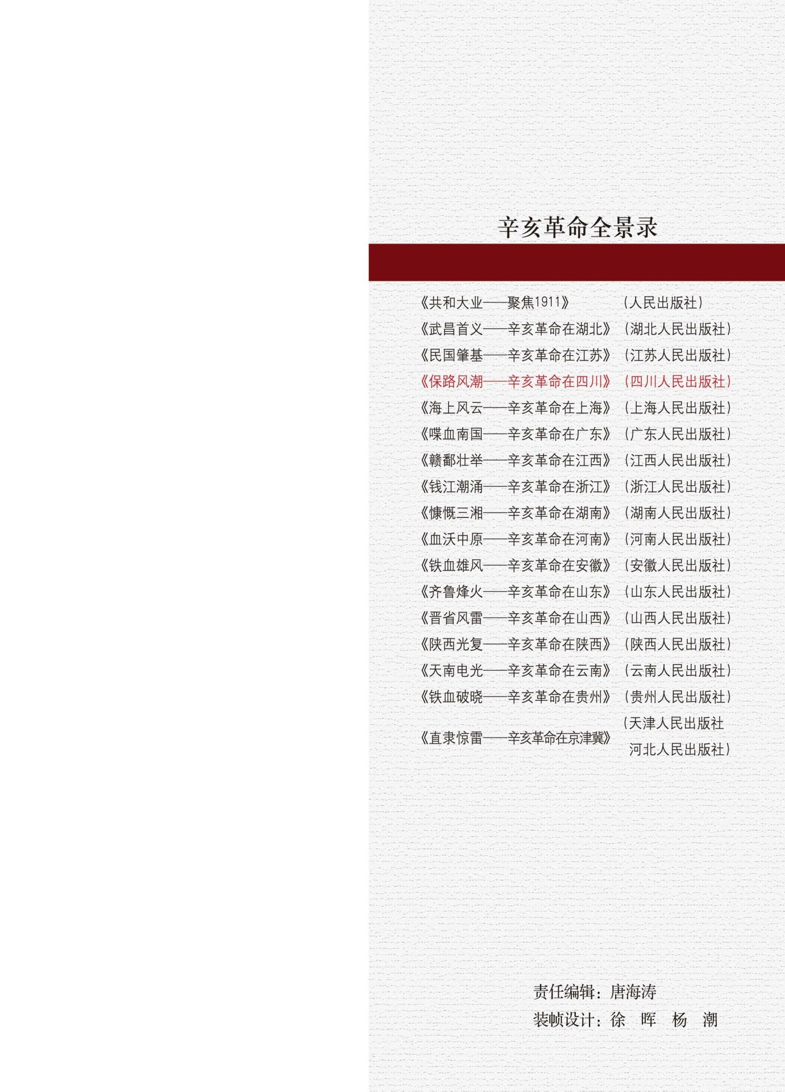 就读中国近现代史专业研究生时,我的研究方向就是辛亥革命史。辛亥革命90周年将到之时,我近20万字的书稿因换电脑而不幸丢失。承蒙四川人民出版社在辛亥革命100周年纪念之际约我撰写本书,也算了却了我多年的一个夙愿。四川人民出版社相关领导和编辑曾数次光临寒舍,为本书的写作及出版事宜付出不少心血,特向他们致以衷心的谢忱。