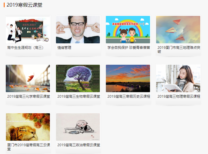 ① 在首页,有如下课程。点击你要选择学习的某一课程缩略图。如我要选择化学科目的云课程学习,就点击化学课程封面缩略图。