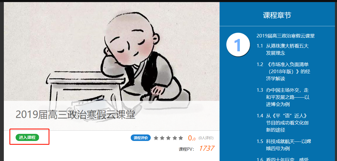 ③课程报名成功之后,会出现如下页面。点击“进入课程”按钮,即可参加课程学习。