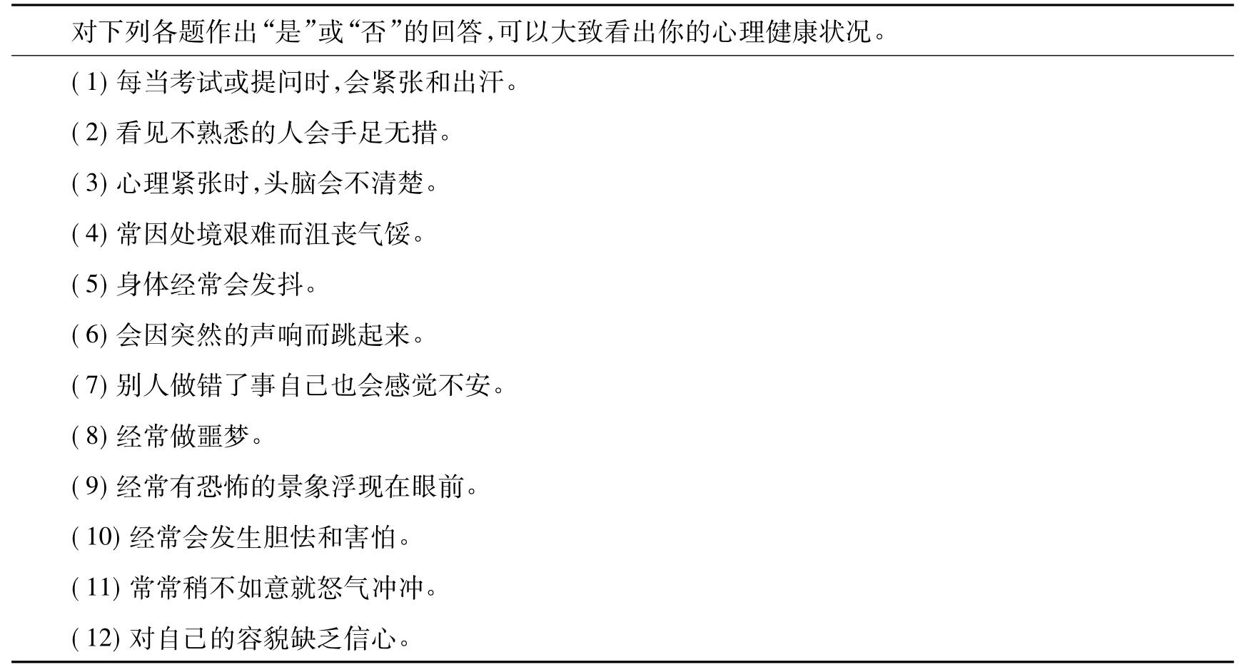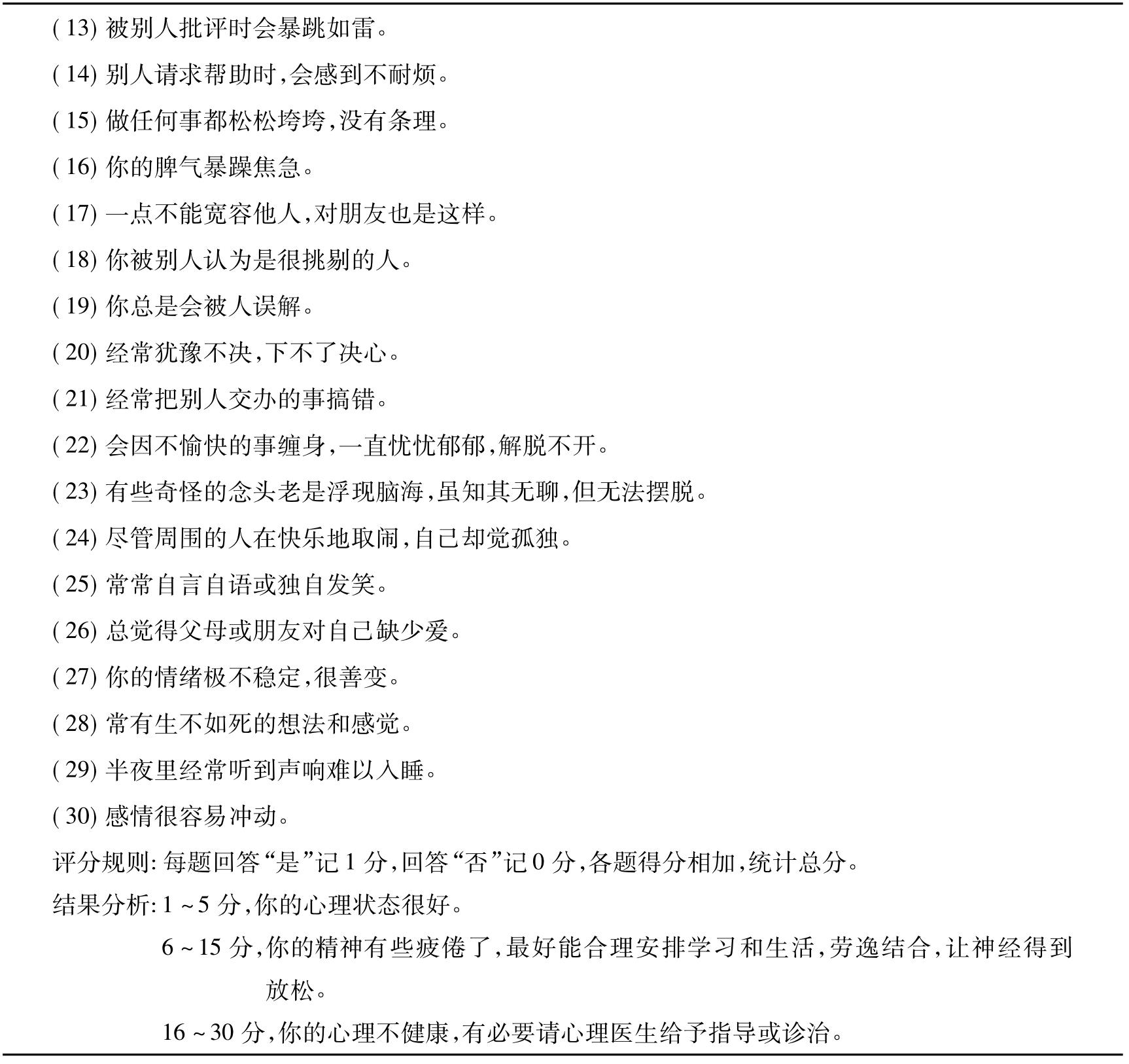 参照心理健康的一般标准,根据大学生的实际情况,评价大学生的心理健康应该从以下8个方面入手: