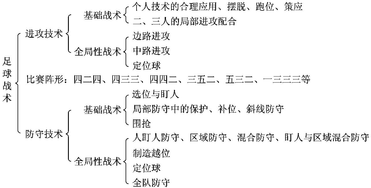 足球比赛是由攻守这对矛盾组成,比赛中进攻与防守不断地变换组成了比赛的全过程。因此,足球战术可分为进攻战术和防守战术两大系统,无论进攻还是防守的战术都包含着个人和集体的战术,如图2-47所示。