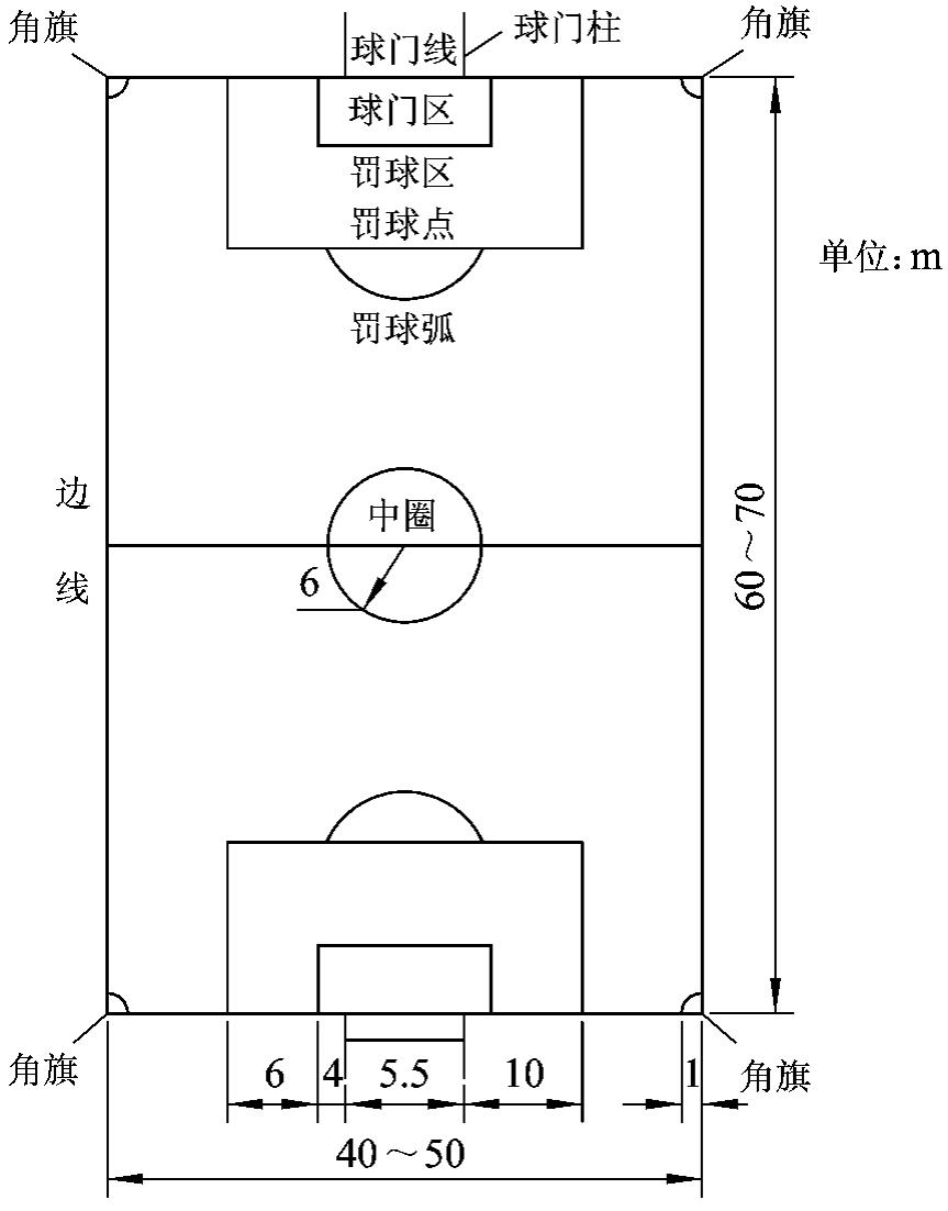 场地:标准场地长60~70m(边线),宽40~50m(端线)。