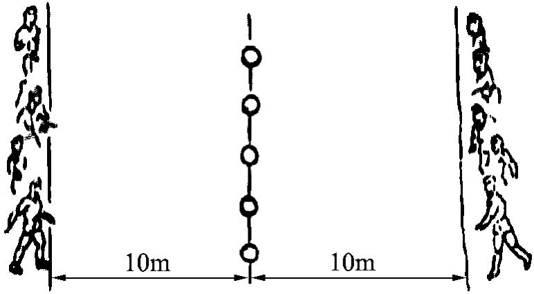 1)各种姿势的原地起跑(10~30m)。包括有侧身站立、背向站立、坐地、坐地转身、俯卧、仰卧、滚翻、原地跳跃等姿势。