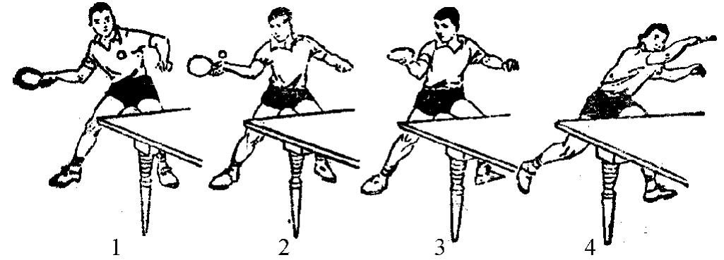 动作方法:以一脚为轴心,另一脚向前、左、右移动一步,身体重心也随之落到移动脚上,挥臂击球。