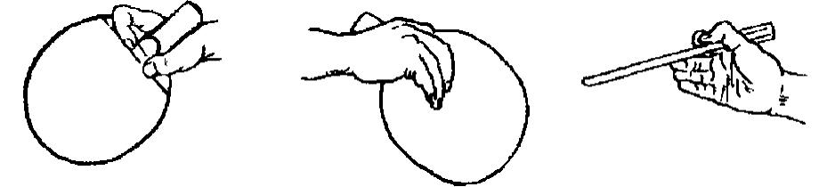 横拍握法(图2-125)的优点是:照顾面广,可攻可削;反手攻、削球,手腕容易着力,威胁性比直拍反手大,这种握法有利于削球。