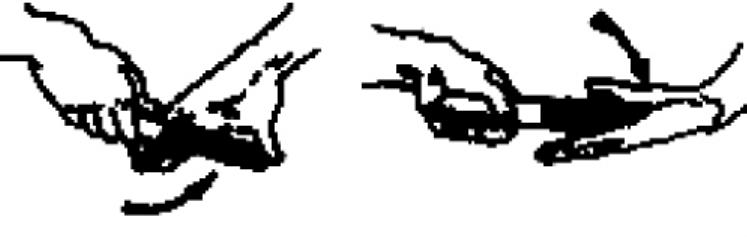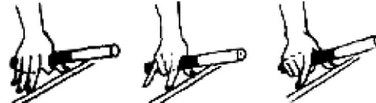 第二种是下压式。接棒人手臂后伸,掌心向上,虎口向后,拇指向内,传棒人将棒的前端由上向下压送到接棒人的手中。