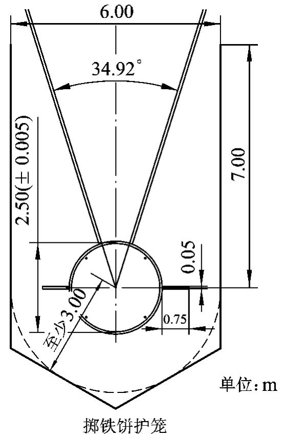 2)铁饼投掷区。铁饼投掷圈内沿直径为2. 50m,落地区角度也为34. 92°,其弦长计算方法和画法与铅球相同(图3-17)。