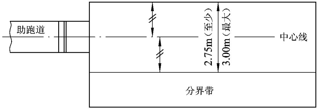1)跳远和三级跳远。跳远和三级跳远助跑道宽至少1. 22m、最多1. 25m,落地区宽至少2. 75m、最多3m,助跑道中线与落地区中线应重合(图3-19)。