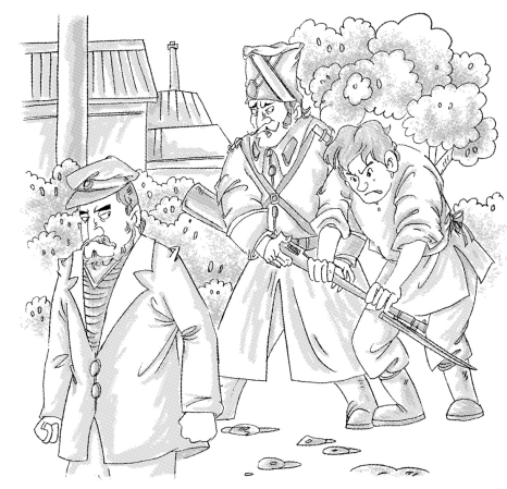 与此同时,切尔尼亚克上校和哥萨克大尉赶去整顿警备司令部。他们从警卫室一直“整顿”到牢房,准备把无关紧要的犯人放走,以免被“大头目”看见。于是一个被诬陷偷马的老头和一个贩私酒的老太婆马上被赶出了牢房。