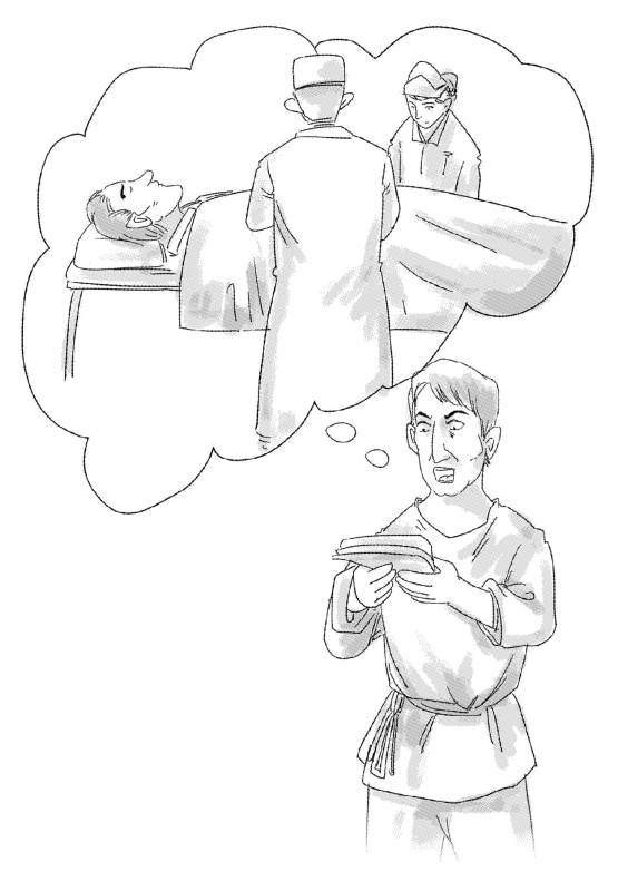 几分钟后,厚实的面罩遮住了保尔的脸。接着,令人窒息的、味道难闻的第一滴麻醉药水滴下去了。