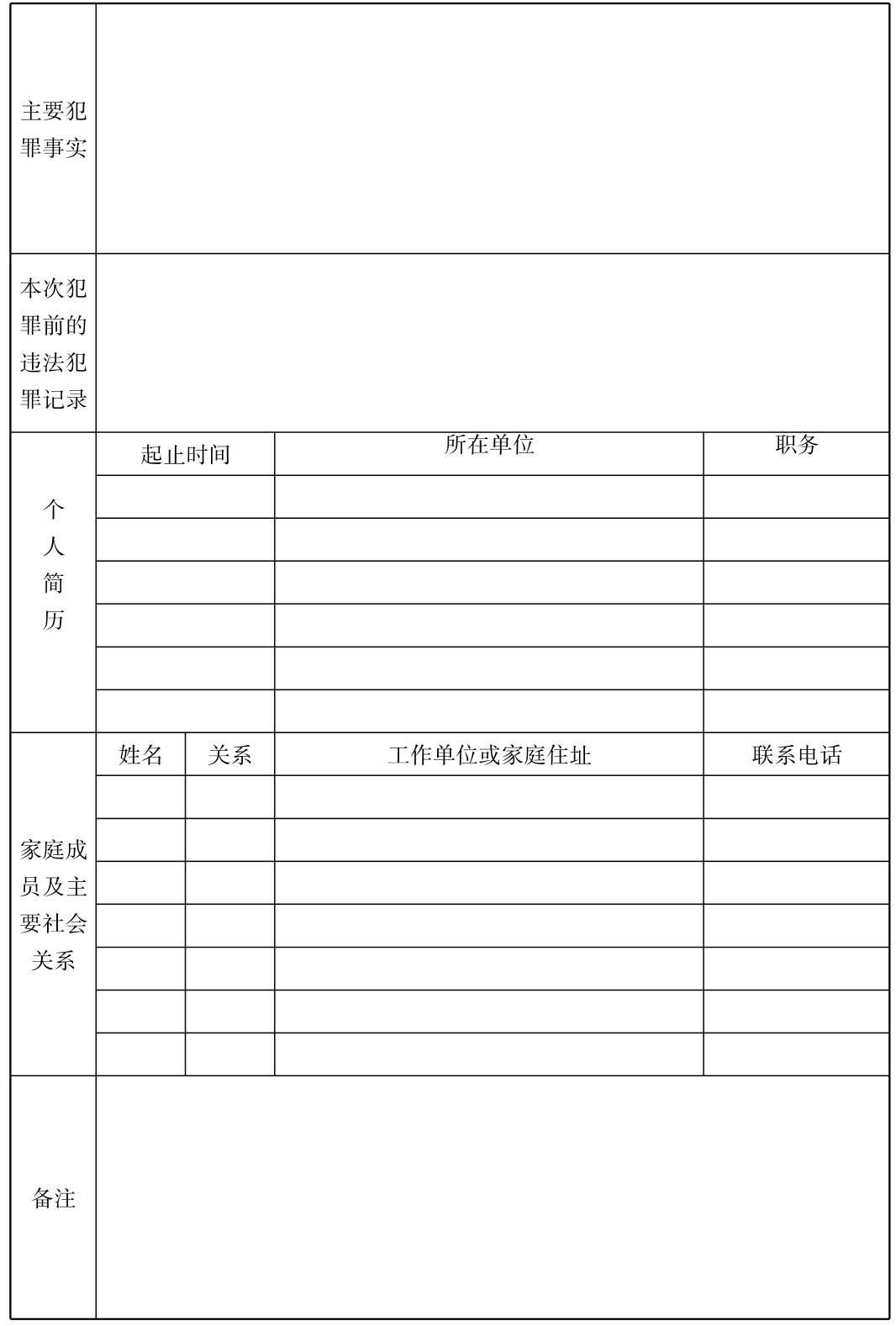 注:此表随建议书等一并报送人民法院 (公安机关、监狱管理机关)。