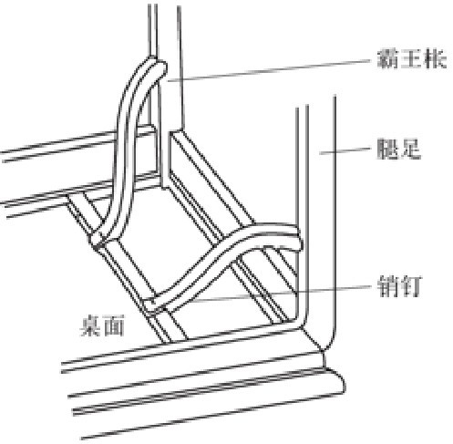元代家具的形式以豪放、简洁为特征。其结构方式的变化一是桌面下的拉枨(霸王枨)(图1-18),以直线浑面或是马鞍形曲线进行拉接的形式得到完善;二是桌面下的束腰开始出现并且定型,束腰连接直榫和45°棕角结构也开始完善。