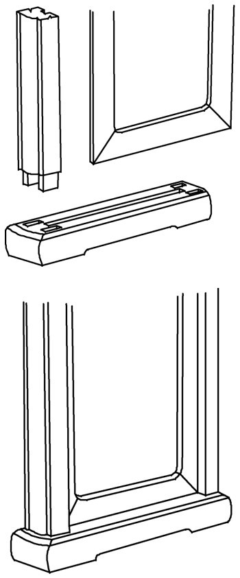 (3)圈口及壸门券口的接合。圈口是装在四框里的牙板,四面或三面牙板互相衔接,有上下、左右四周的四根牙子,在圈口内侧形成一个完整的圆圈,起加固和装饰圈口的作用,中间形成亮格。在众多家具实物中,此结构大多用在侧面或人体不宜接触的地方,如翘头案口间的圈口和书格两侧的亮洞等。壸门券口以三面装板多见,四面极少尤指安在椅盘以下者,中间留亮洞。壸门指皇宫里的门,它和其他圈口不同的是它没有下边的那道牙板,因此既可以在侧面使用,也可以在正面使用(图4-30)。