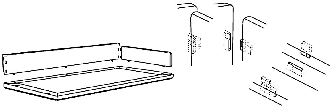 罗汉床(图4-71)围子与围子之间或围子与床身之间常用到走马销(图4-72)。走马销是栽销的一种,又叫“桩头”,是一种用于可拆卸家具部件之间的榫卯结构。由于拆卸时榫头易磨损,甚至损坏,出于维修方便的目的,也避免因榫头损坏而使家具部件报废的情况,因此多采用挂榫结构,即常用一块独立的木块做成榫头栽到构件上去,来代替构件本身做成的榫头。一般将其安在可装卸的两个构件之间。独立的木块做成的榫头形状是下大上小,榫眼的开口是半边大、半边小。榫头由大的一端插入,推向小的一边,就可扣紧。