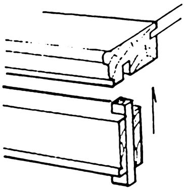 透销是在栽销的基础上,使销子延长并通透于其一板材的中心。多见于大型的铁力、紫檀等床案厚重的牙板与大边的拍合,十分坚固(图4-89)。