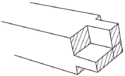 若两个方榫安排互相垂直即成为L形榫,这种安排适合使用于当两支横挡在转角处会合且支柱又必须切削榫头嵌进横挡里的时候。当切削L形榫头时,通常其内侧的锯路并无所谓而可相互贯穿锯切,其转角处的方形部分有些结构或需切削掉,否则搭配的榫孔将成中空的L形(图4-139)。