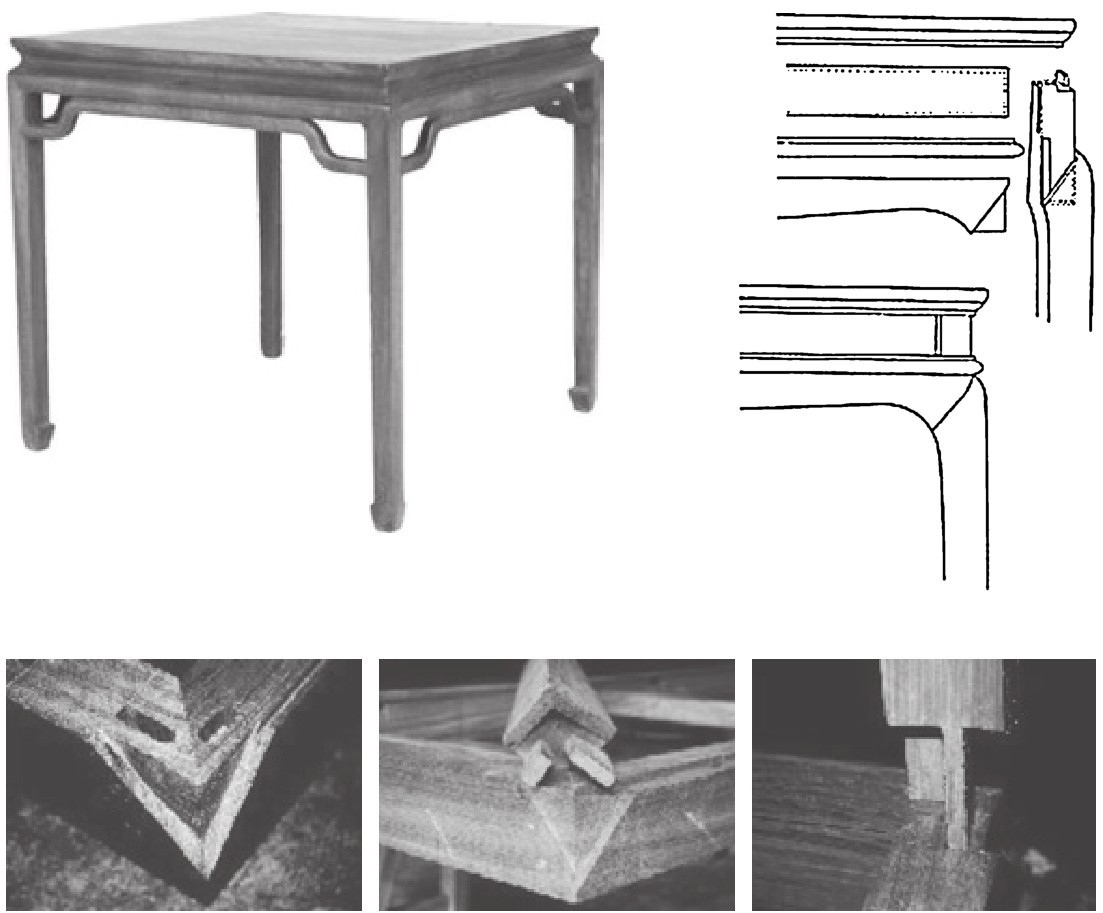 方桌是厅堂中的常用家具,桌面是正方形,尺寸有大小之分。大的每边可坐两人,四边可坐八人,称为“八仙桌”;小的可以坐四人,称为“小八仙桌”或“四仙桌”。方桌是家庭必备家具,具有会客、宴饮等多种功能,所以流传下来的较多(图5-13)。