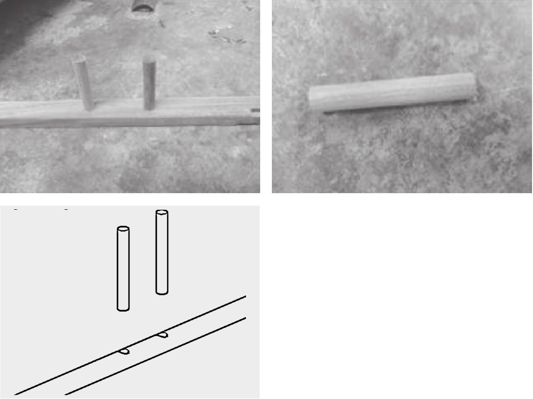 (4)圆榫。圆榫构件截面为圆形,构件自身一部分为榫头,为无肩榫。如图6-9所示。