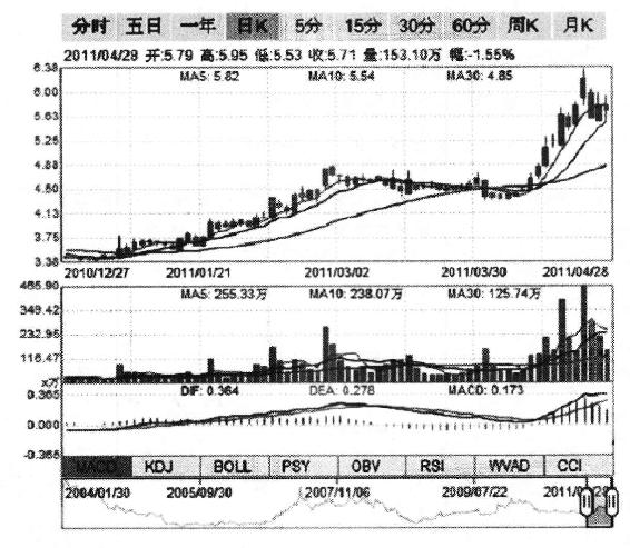 当然,事后证明这外来的和尚还是不如本土的实力强悍,或许是由于胆子太小,或许是由于贪心不足,总之是耐不住性子先跑了。但随后公司股价却没有兵败如山倒,反倒是在通过股东大会决议的这段时间里上演了彪悍的强权行情,一路上涨到最高时的6.38元(如图4-1所示),至此参与定向增发的公司高管和PE投资机构已能够获得84.39%的资本利润,虽然仍无法与那些数倍收益的IPO项目相比,至少也能抚慰一下他们此前“受伤的心灵”了。