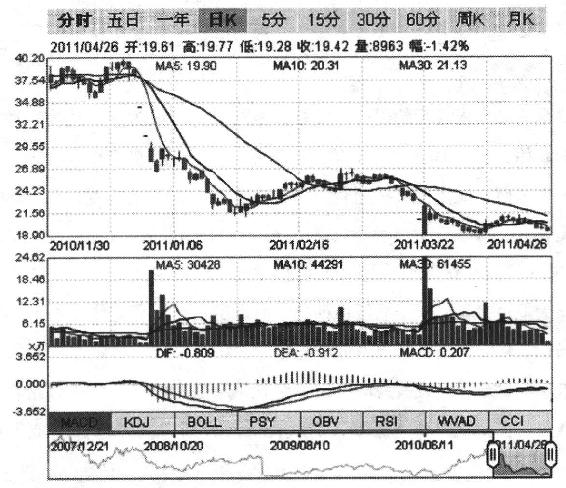 图7-1 控股股东持股被冻结后绿大地股价K线图
