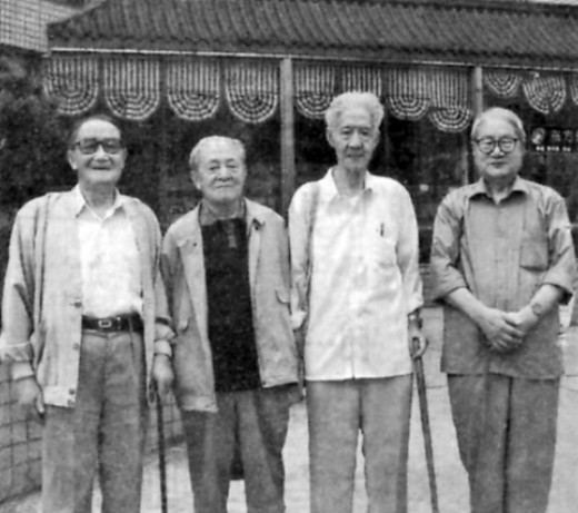 四川大学文学笔会创会四员。左起:杜谷、孙跃冬、赵锡骅、邓文质。
