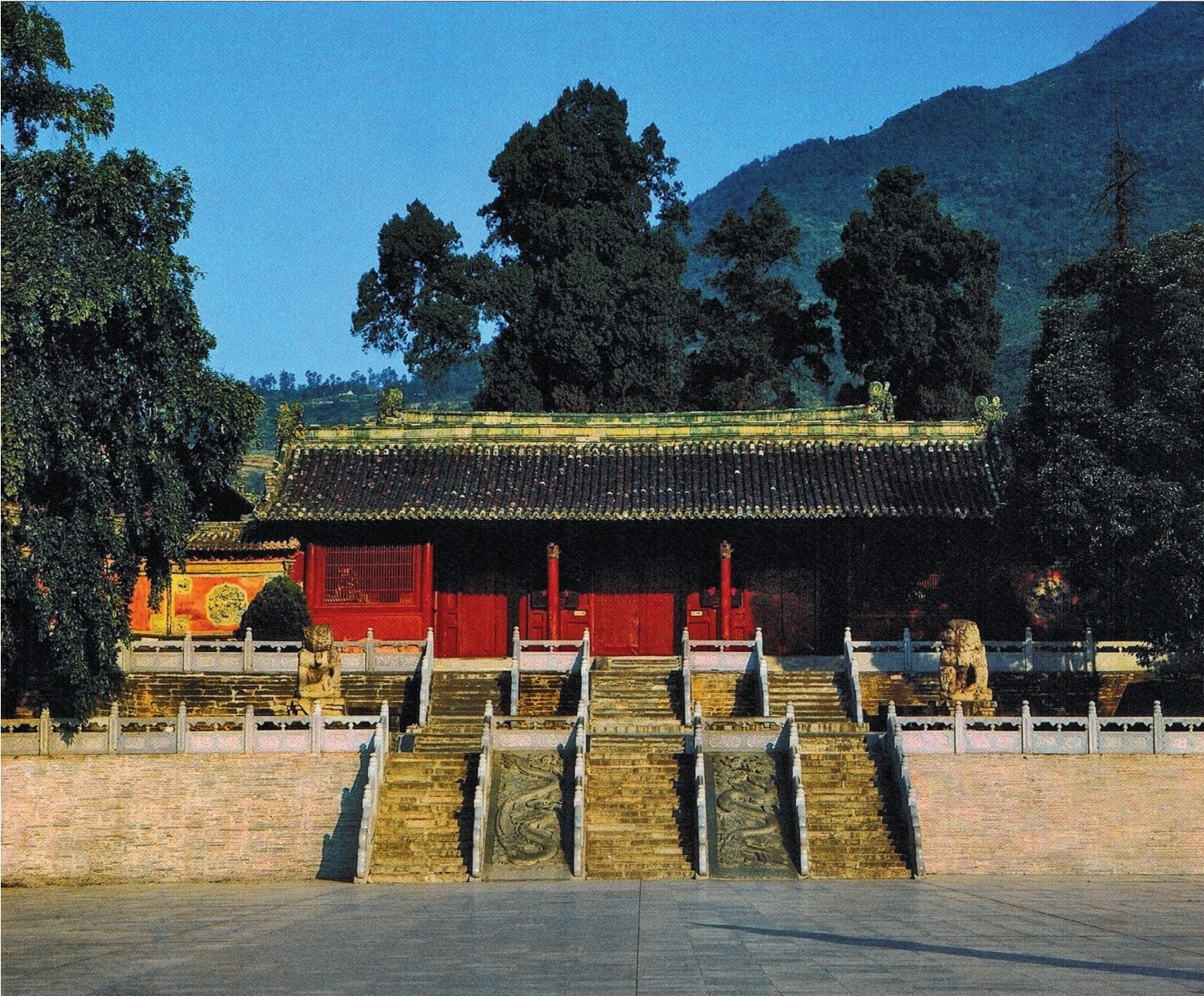 通面阔五间计21.9米,通进深两间计7.2米,单檐悬山式。屋面覆盖黑琉璃瓦,以绿琉璃瓦剪边。柱梁作构架,五檩无廊式,中柱落地,砌上露明造。建筑用侧脚之制。台基方形,前檐石砌垂带踏跺一道。
