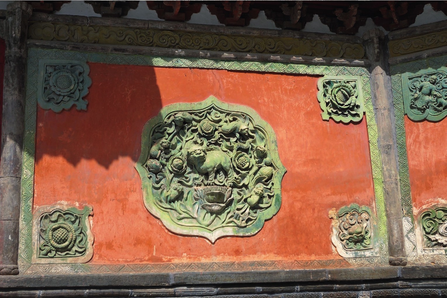 山门八字墙琉璃花饰(一)