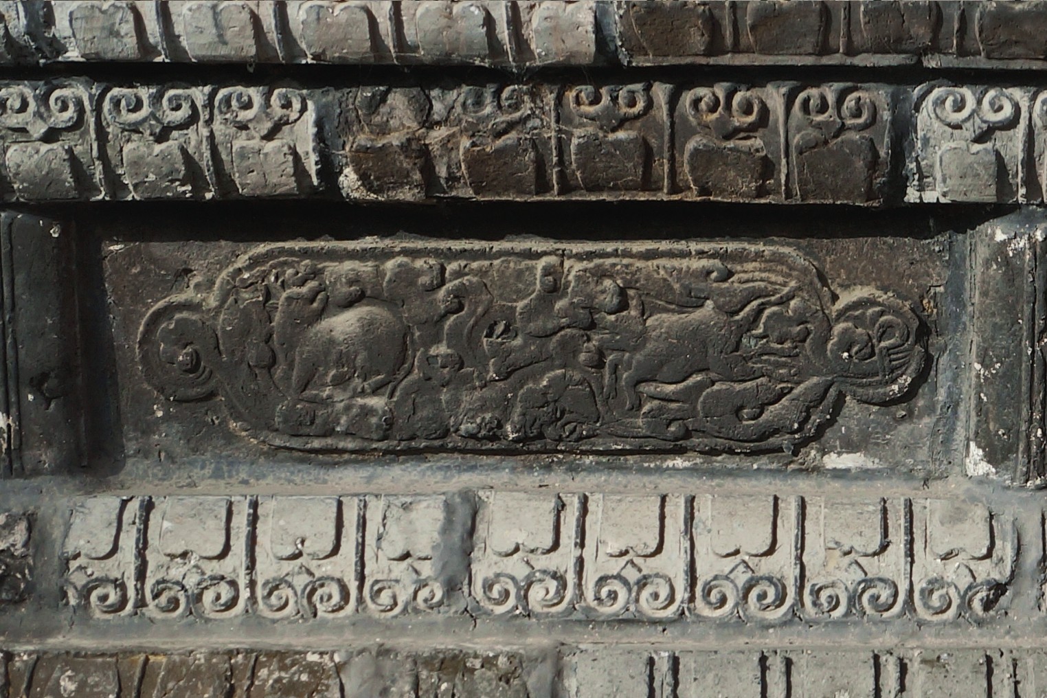 山门八字墙须弥座雕刻局部