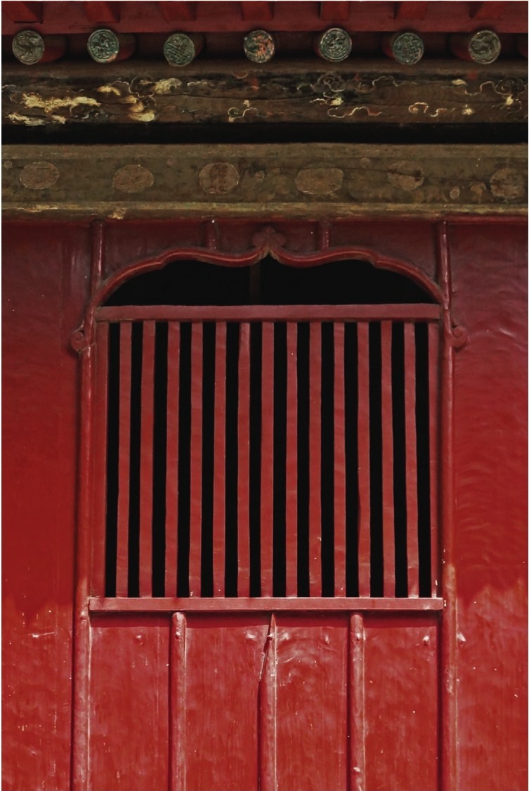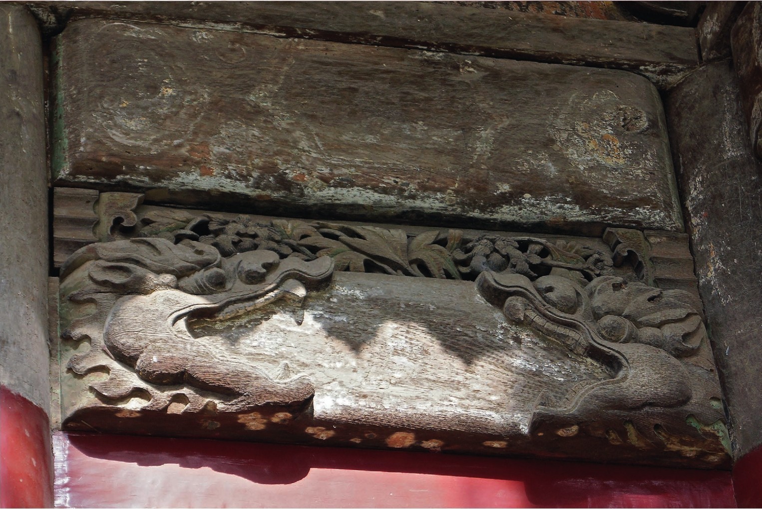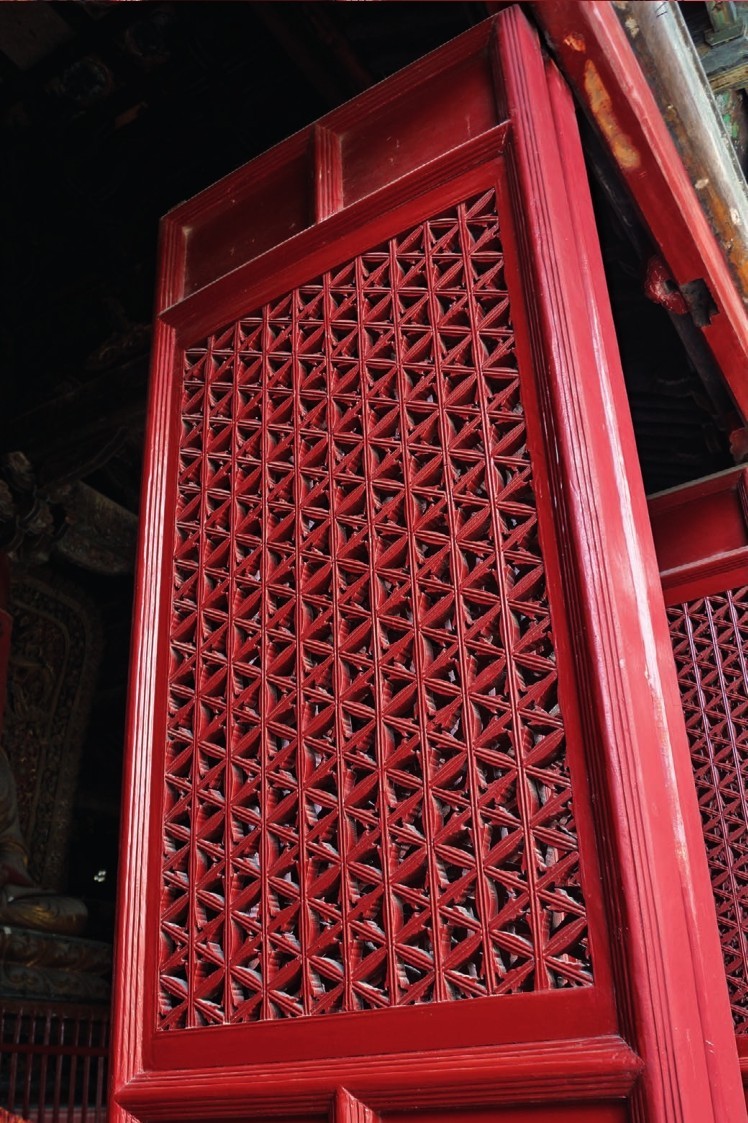 墙体及木装修:山墙为砖墙;前檐明次间置隔扇门,稍间为砖墙上置槛窗;后檐明间置壸门,稍间置壸窗。殿内柱头、梁、枋、斗栱、天花遍施彩画。