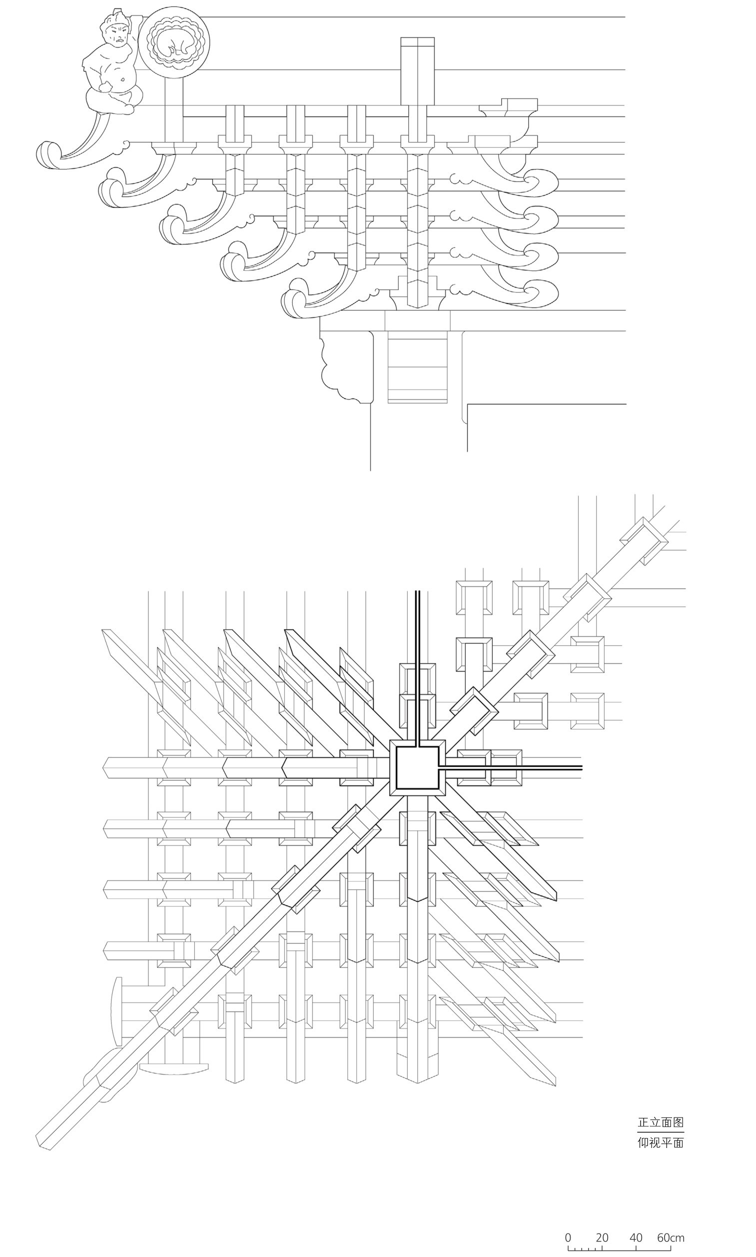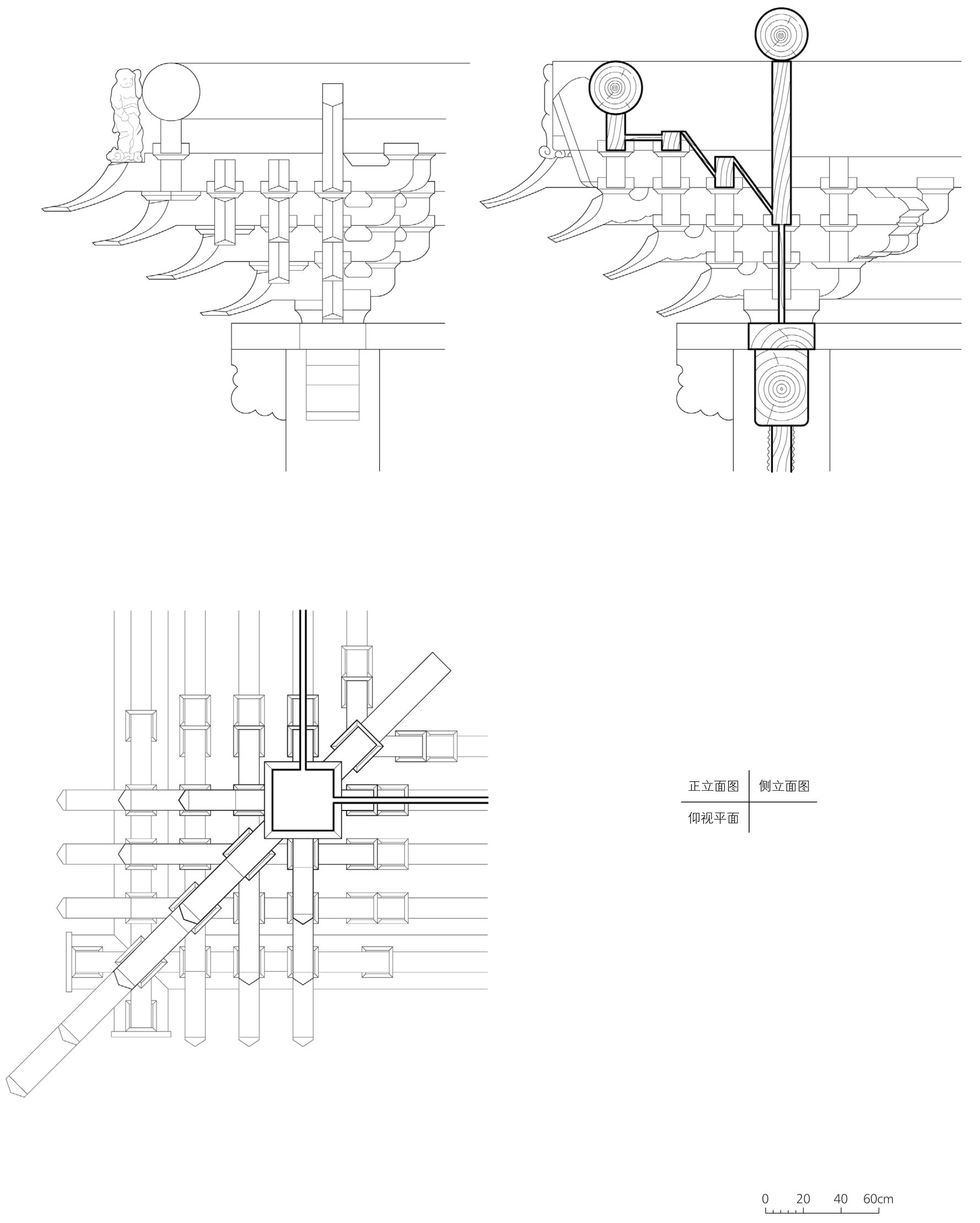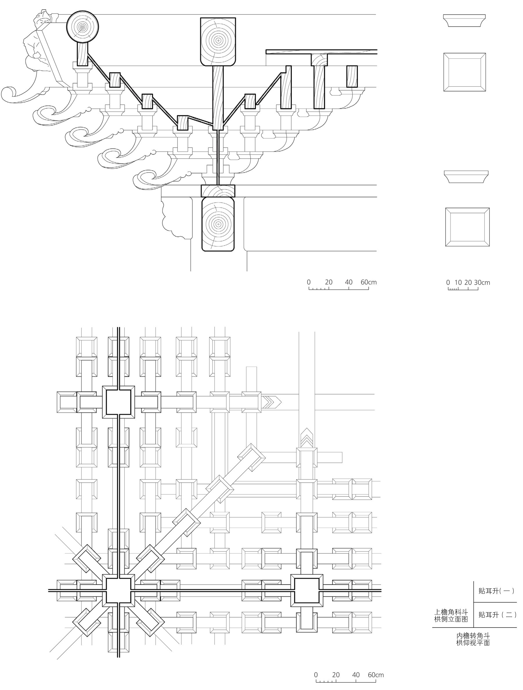 大雄宝殿上檐角科及内檐转角斗栱详图