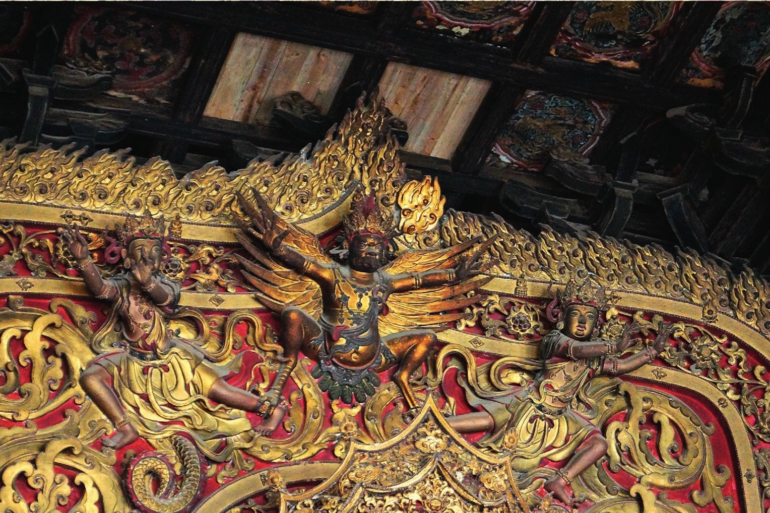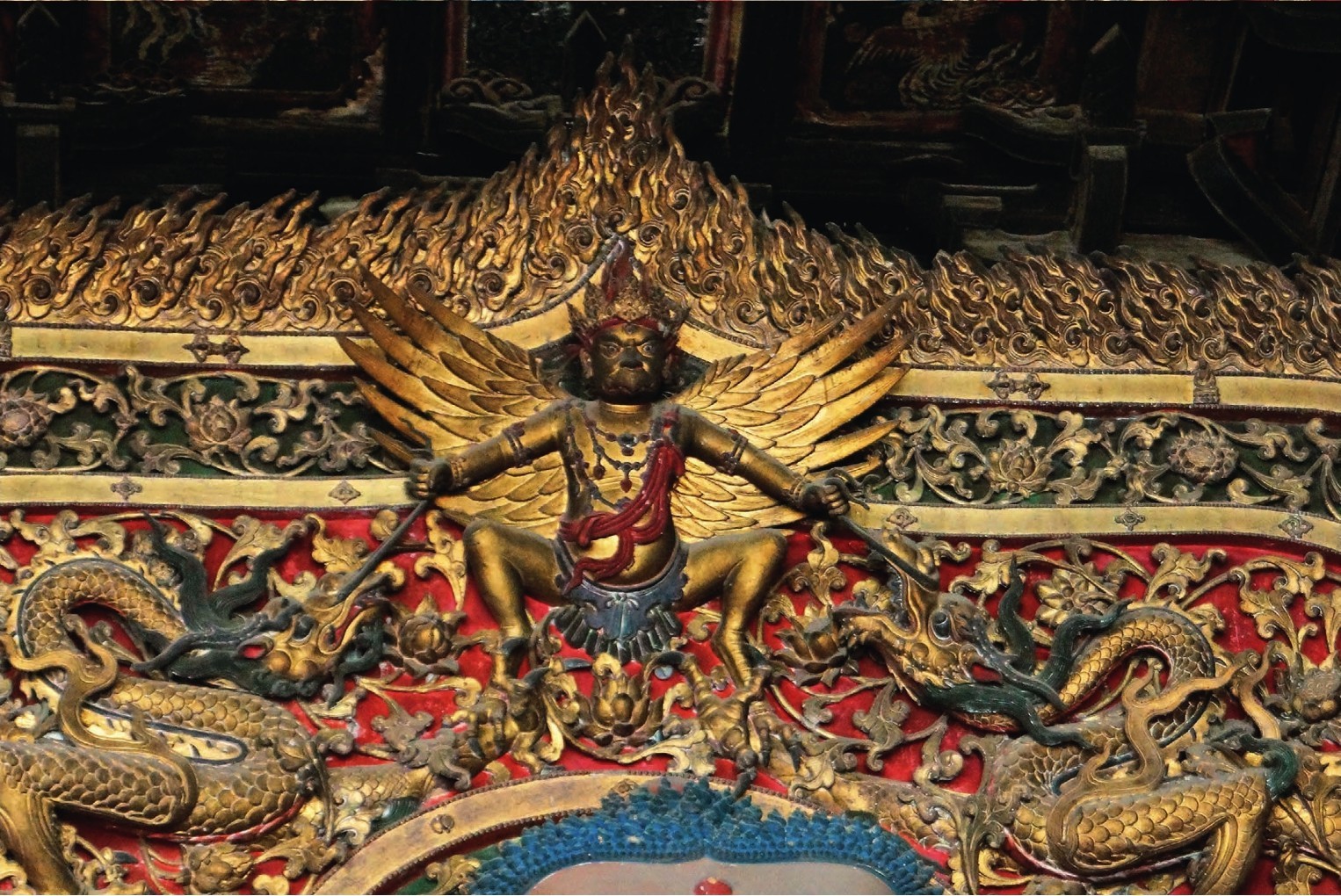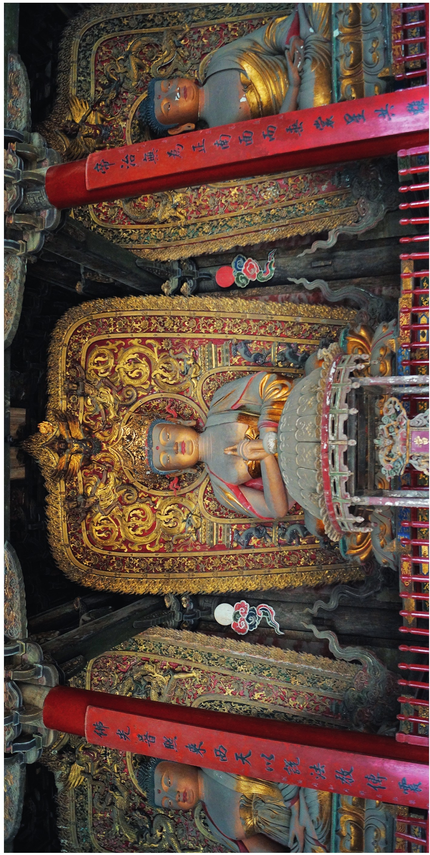 此外,报恩寺地处我国少数民族聚居地,建造者又为当地的土官,因此这座藏于深山的佛寺或多或少带有当地本土习俗的痕迹,这些痕迹主要表现为藏传佛教的痕迹,如佛像的造型、背屏的装饰等。
